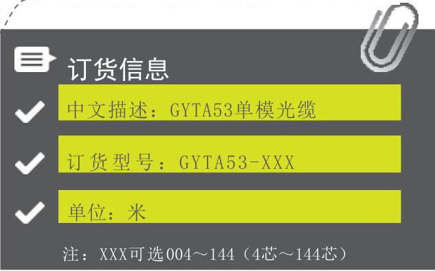●特别设计的紧密的S型绞合结构,具有很强的余长控制能力。 ●单根磷化钢丝中心加强 ●储存、使用温度:-40至70℃ ●符合YD/T 901标准 ●适用范围:管道、非自承、架空、直埋